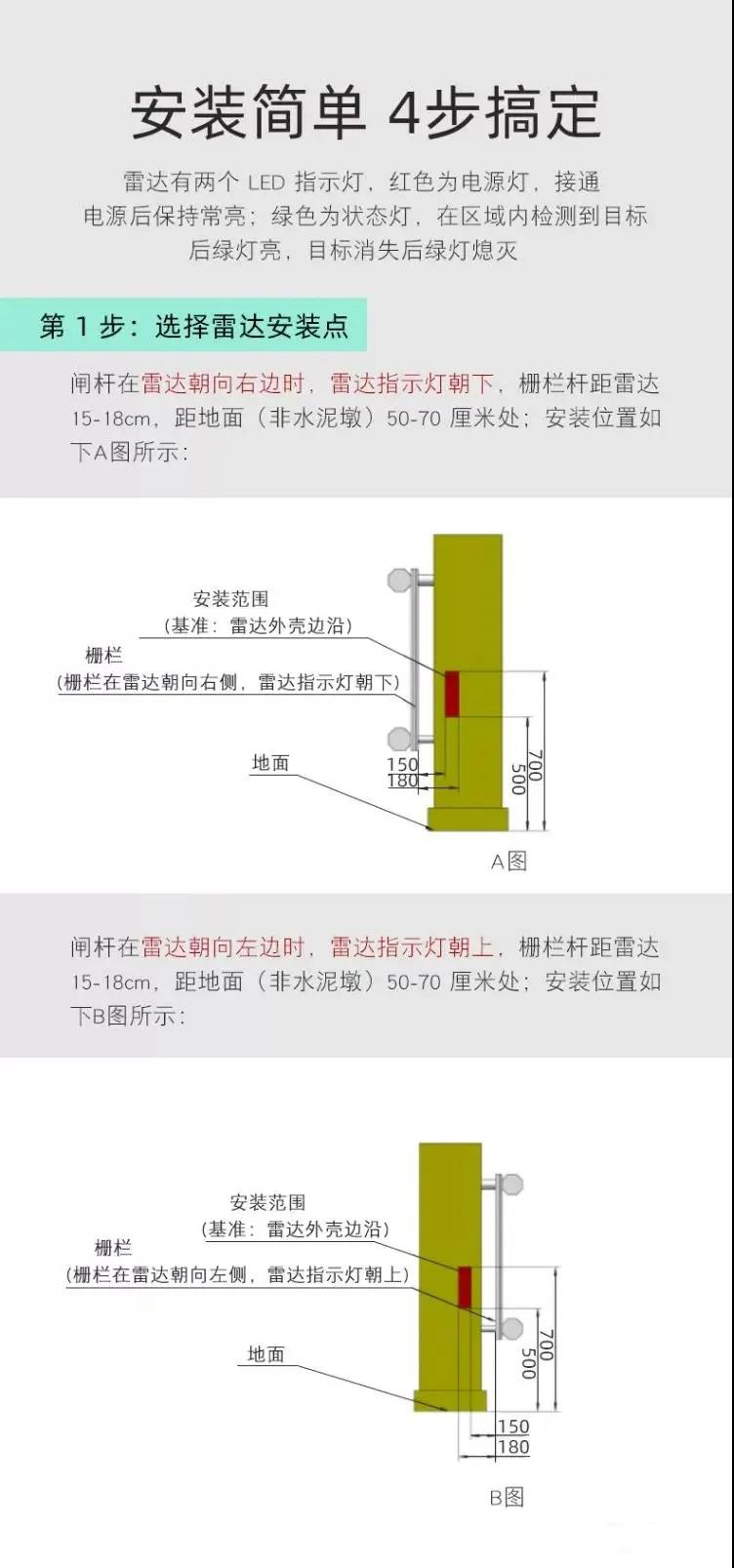 而且道閘專用雷達安裝簡單,4步搞定