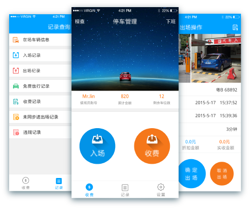 收費(fèi)APP集成車輛號牌自動識別算 法,實(shí)現(xiàn)出入通道車輛快速識別、 快速檢測,設(shè)備成本低,用手機(jī)就 可以直接工作,操作簡單便捷。